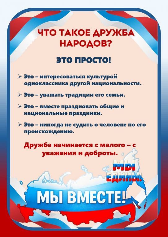 1.Укрепить дружбу, взаимопонимание и сплочённость между всеми народами, которые проживают на территории России.